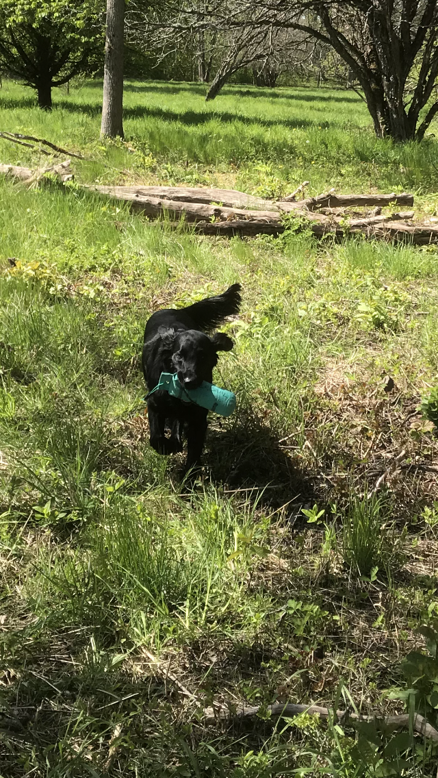 Jakten är ändå det som Leah gillar mest. Hon är en duktig apportör både med dummies och med vilt. Ger sig aldrig. Hon tar vilt spontant (varmt+ kallt) och används i praktiskt jakt på både klövvilt, hare och fågel.