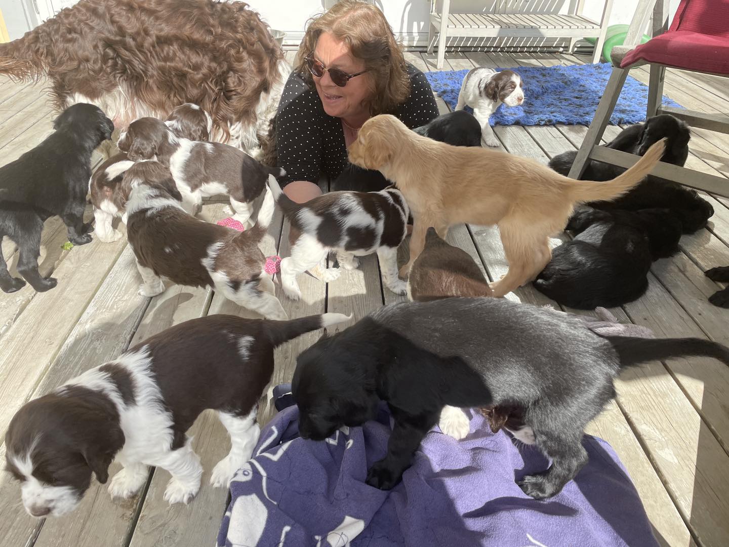 Föda upp Flatar/Springer spaniels valpar och arbetet med att finna härliga bra hem åt dem är otroligt stimulerande och roligt.