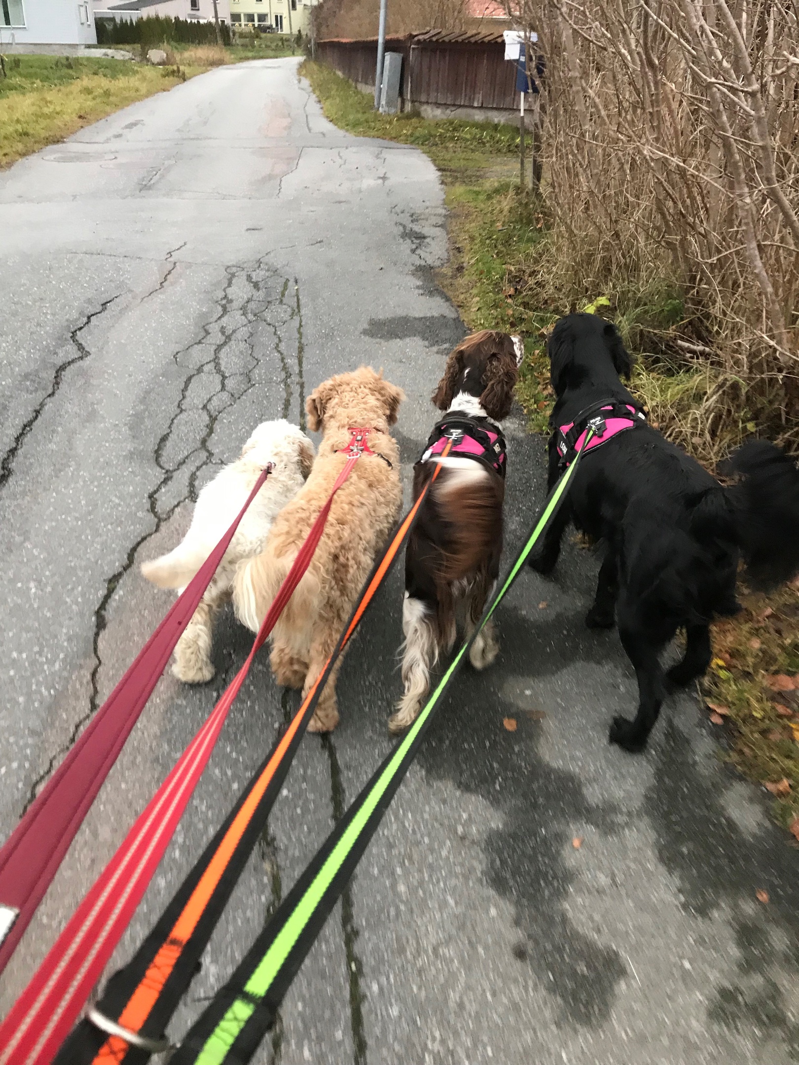 Hundarna bor tillsammans med oss och våra egna hundar.